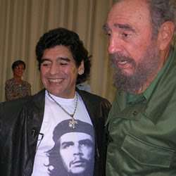 También simpatiza con Cuba –donde se rehabilitó contra las drogas, a partir del 2000, y sostuvo una estrecha relación con Fidel Castro, incluso el diario mexicano Récord difundió fotos de una orgía sexual en la isla durante su convalecencia—y Bolivia, con cuyo presidente, Evo Morales, ha sostenido encuentros de futbol.